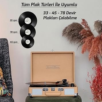 Taş Plaklar dahil mevcut tüm plak türlerini çalabilme (33, 45, 78 Devir).