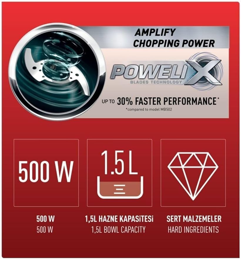 MasterChop Powelix Maxi 500 Watt 4 Bıçaklı Doğrayıcı Rondo [Beyaz] – 1500637071