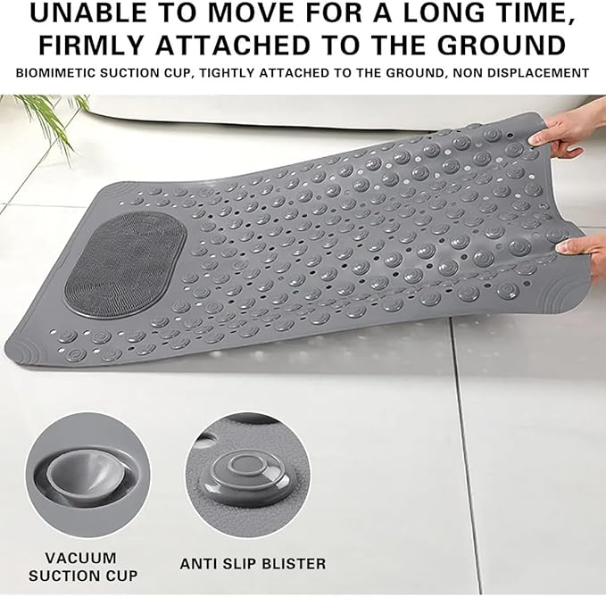 Matı, Küvet Paspası, Güçlü Vantuzlu, Su Tahliyeli, Masaj, Fırçalı Kaymaz Tabanlı Banyo Paspası Duş Kaydırmazı Vantuzlu 36 X 69,5 cm (GRİ)Matı, Küvet Paspası, Güçlü Vantuzlu, Su Tahliyeli, Masaj, Fırçalı Kaymaz Tabanlı Banyo Paspası Duş Kaydırmazı Vantuzlu 36 X 69,5 cm (GRİ)