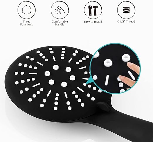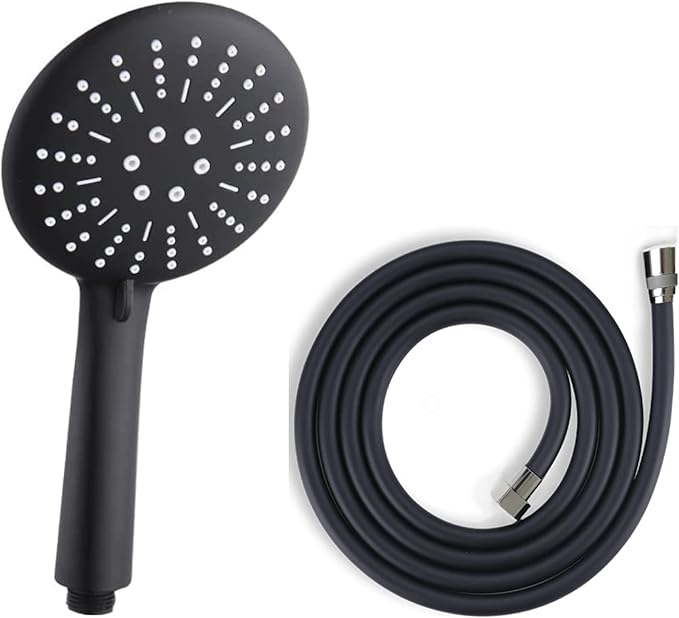 Matte Black Lüks Duş Seti – 3 Farklı Püskürtmeli Full Mat Siyah Kaplama El Duşu + 150 cm Siyah PVC Duş Spirali – Paslanmaz, Kopmaz, Kırılmaz Çelik Bağlantılı PVC Duş Hortumu (2’li Set)