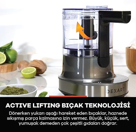 Active kaldırma bıçak sistemi yukarı ve aşağı dönüş hareketi sağlar Devamlı doğrama ve puls fonksiyonu farklı malzemelerle çeşitli tarifler hazırlamak için uygundur Damlatma yuvası sosları karıştırmak için tasarlanmıştır Paslanmaz çelik bıçak dayanıklı malzemeden üretilmiştir