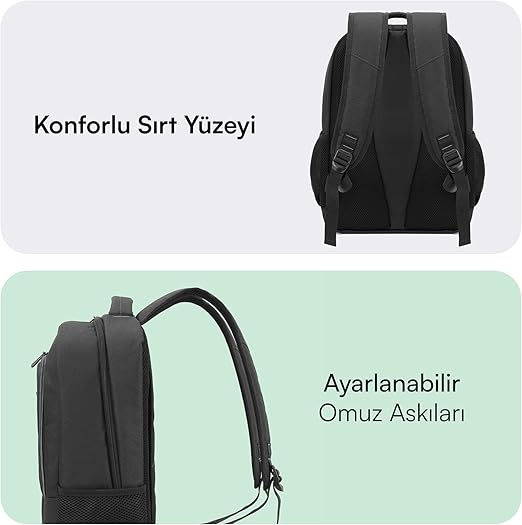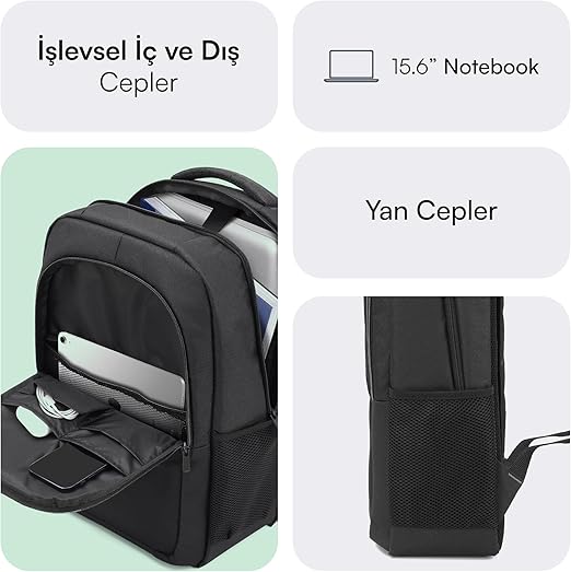 İdeal Boyutlar: Siyah rengi ile hem erkek hem de kadın kullanıcılar için uygun olan Laptop çantası 15.6 inç, 44*30*16cm boyutları ve 21L ile ideal bir depolama alanı sunar. Uyarı: ürün %100 su geçirmez değildir. Yoğun yağmur, suyla direkt temas veya uzun süreli ıslaklık durumlarında içeriye su sızabilir. Lütfen kullanım sırasında bu durumu dikkate alınız.