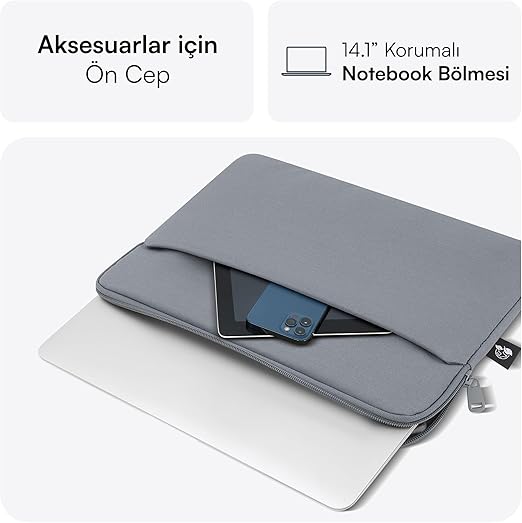 Aksesuar Cebi: Nova Eco Laptop Kılıfı, fermuarlı ön cebi sayesinde cep telefonu, kırtasiye malzemeleri ve powerbank gibi eşyalarınızı rahatça saklamanızı sağlar ve ihtiyaç duyduğunuzda kolayca erişebilirsiniz.