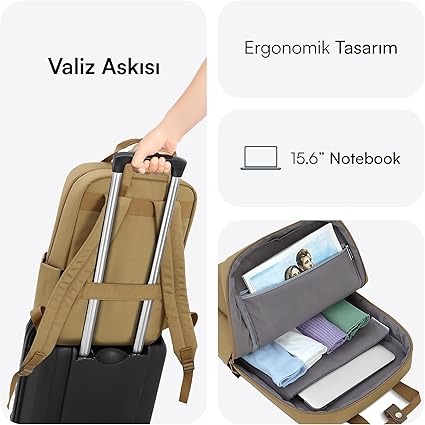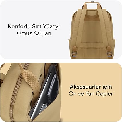 MCE-1523 Nova Eco Çevre Dostu Laptop Sırt Çantası 15.6 inç, YKK Fermuarlı Bilgisayar Sırt Çantası, Kadın ve Erkek Günlük Çanta, Okul ve İş Çantası, Camel