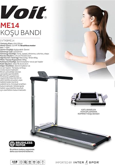ME14 Koşu Bandı, 2HP Brushless Motor, Bluetooth ve Uzaktan Kumanda