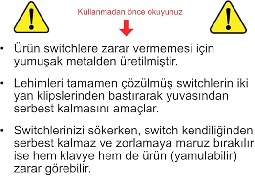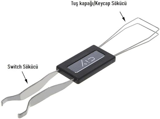 Mekanik Klavye Tuş Kapağı ve Switch Sökme Aparatı: Ürün, klavyenizdeki mekanik tuş kapağını açarken ve switchleri sökmede kullanabileceğiniz bir alet içerir.