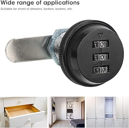 3 Haneli: Kombine dolap kam kilitlerimiz anahtarsızdır ve geleneksel kilitleri değiştirmek için idealdir. Sıfırlanabilir, üç haneli şifre, kolay çatlamaz. Ve 1000 olası kombinasyon sağlar. Varsayılan kombinasyon kodu 0-0-0’dır