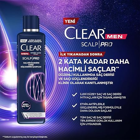 Etkili sonuç almak için Clear Scalp Pro Saç Dökülmesine Karşı Güçlendirici Serum ile birlikte kullanın.
