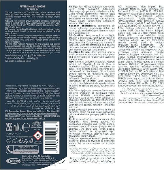 Ana etken maddesi yüzde 70 alkol olup, baharat ve narenciye notaları içerir