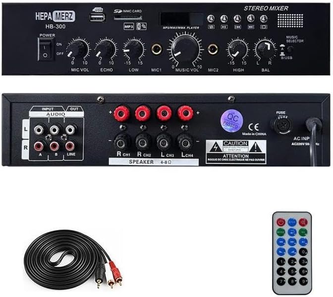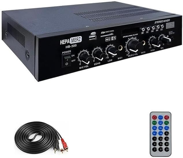 Hepa Merz HB-300 Stereo Mixer Amfi 4-8 Ohm 2 Çıkışlı 2x150W Anfi Bluetooth Usb