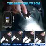 Kolay kullanım: Anahtarlık el feneri, ana aydınlatma ve yan aydınlatma modları, kolay geçiş için düğmelerle kontrol edilir. Herhangi bir aydınlatma modunda, ışıkları kapatmak için anahtar düğmesine 2 saniye boyunca uzun basın (hafıza fonksiyonu ile).