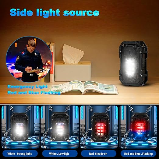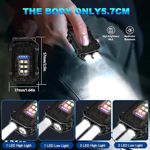✪【Sekiz aydınlatma modu】Anahtarlık Meşalesi, Ana ışık (tek ışık güçlü ışık – tek ışık zayıf ışık – çift ışık güçlü ışık – çift ışık zayıf ışık), COB yan ışık (güçlü ışık – zayıf ışık – kırmızı ışık her zaman açık – kırmızı ve mavi yanıp sönüyor). Günlük aydınlatma, bakım, açık hava etkinlikleri, kendi kendine sürüş turları ve daha fazlası için ideal bir seçimdir.