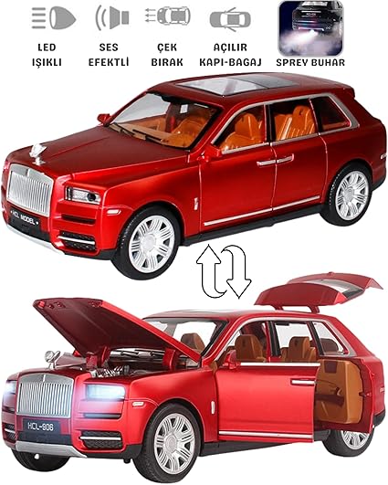 Metal Buhar Atan Led Işıklı Ses Efektli 1:22 Ölçek Rolls Royce Model Jip Araba Diecast Koleksiyonluk Hediyelik Çık Bırak (KIRMIZI)
