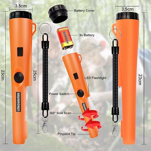 Metal Dedektörü, Metal Dedektörü Pinpointer Araştırma Hazine Avı 360° Altın Hazine Arayışı Kemer, Kılıf, LED, Su Geçirmez Alet Aksesuarları (Turuncu)