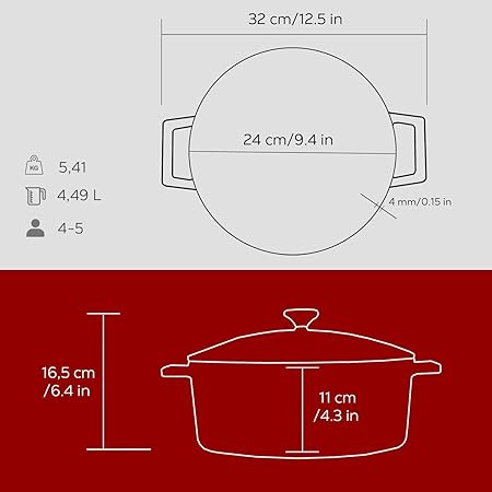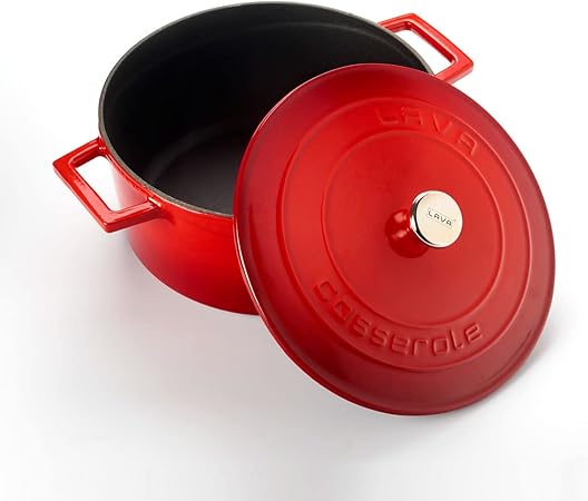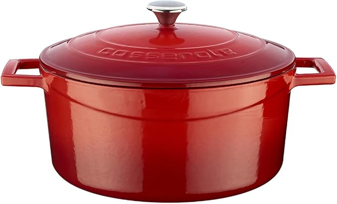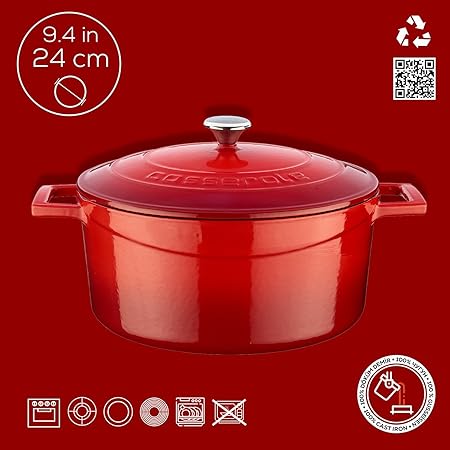 Metal Döküm Yuvarlak Tencere, 24 Cm, Kırmızı