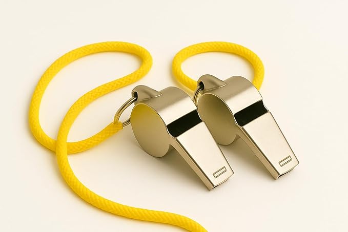 Metal Hakem ve Acil Durum Düdüğü – Yüksek Sesli, Dayanıklı Paslanmaz Çelik, Sarı Askı İpliği ile – Spor, Arama Kurtarma ve Deprem Çantası için Uygun (2 ADET)