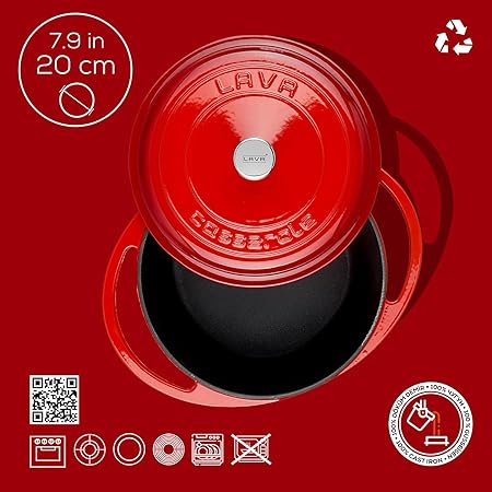 Metal Heritage Serisi – Döküm Tencere, Yuvarlak, 20 cm, Kırmızı
