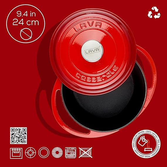 Metal Heritage Serisi – Döküm Tencere, Yuvarlak, 24 cm, Kırmızı