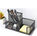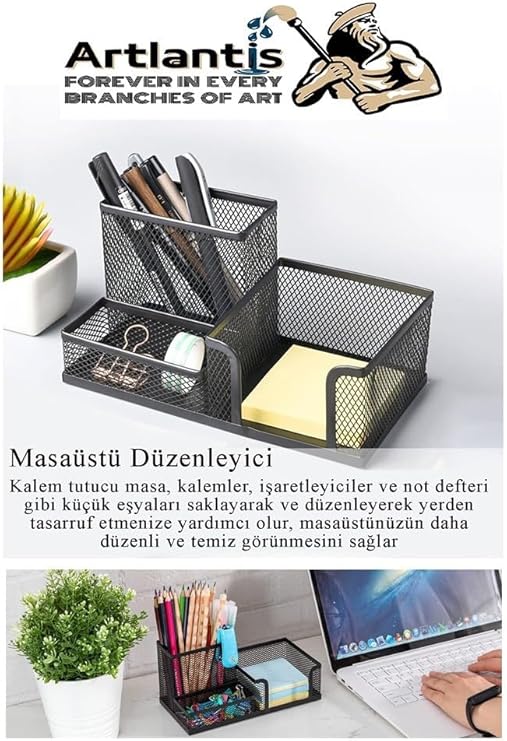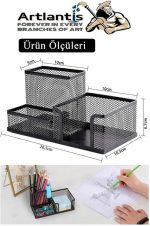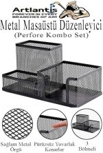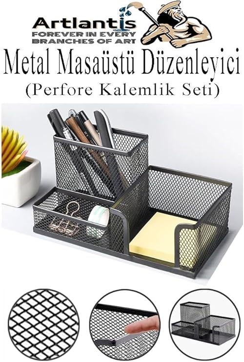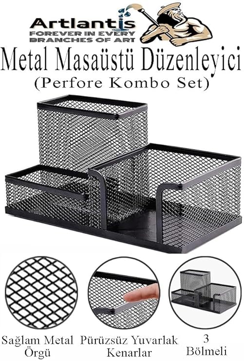 Metal Kalemlik Seti 3 lü Kombo 1 Paket Fileli Perfore Siyah Kalemlik Ataşlık Kağıtlık Küpnotluk Düzenleyici