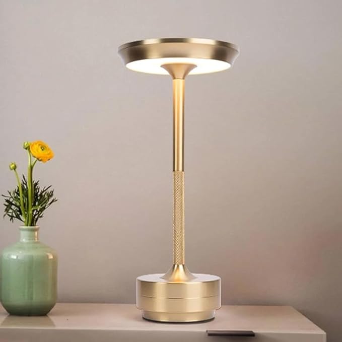 Metal Kasa Masa Lambası Dimmerli 3 Renk Işıklı Dekoratif Abajur Cata Toronto Dokunmatik Restoran Cafe Lambası (Gold)