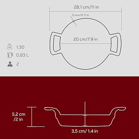 Metal LV Y TV 20 SHN R Döküm Yuvarlak Sahan, 20 cm, Kırmızı