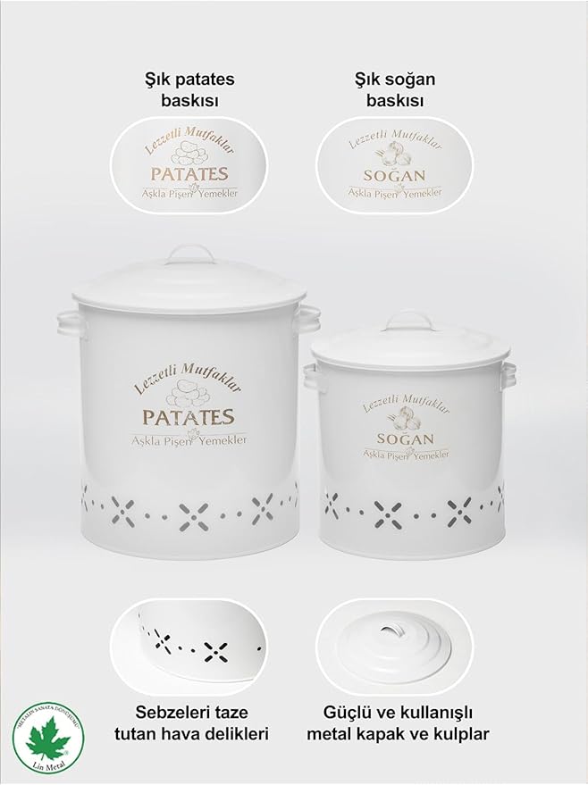 Metal Patates Soğanlık Kovası Sebze Saklama Kabı Beyaz Ln1015BUygunluk: 30 adet stokta