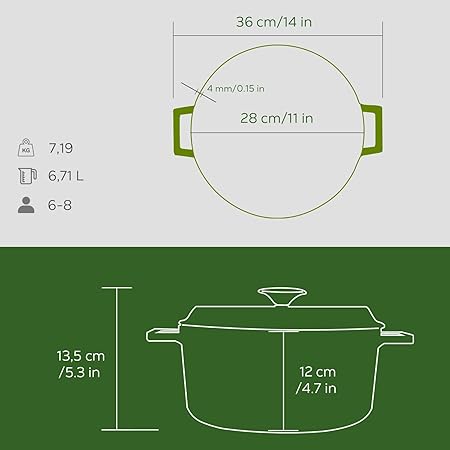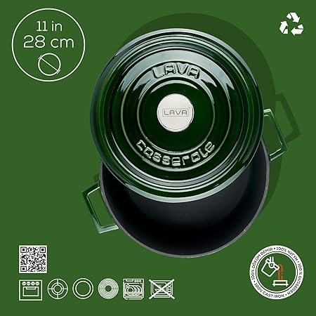 Metal Premium Serisi – Döküm Yuvarlak Tencere, 28 cm, Yeşil