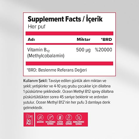 Methyl B12 Dilaltı Sprey 500mcg 5 ml