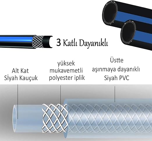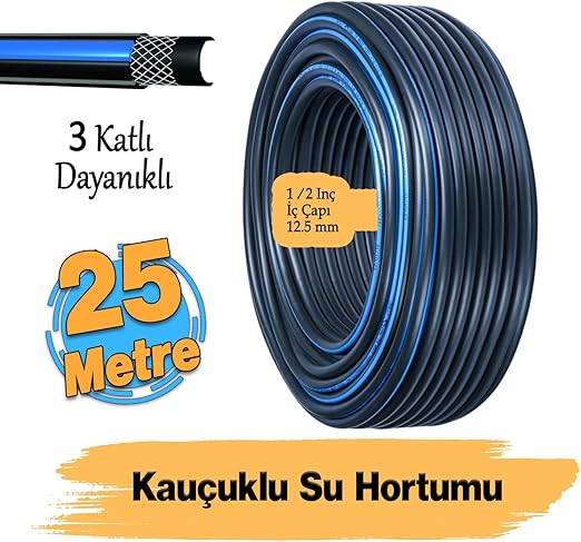 METRE Termo Kauçuklu Bahçe Hortumu Dayanıklı 3 Katlı Sağlam Su Sulama Yıkama Hortum 12.5 mm 1/2″