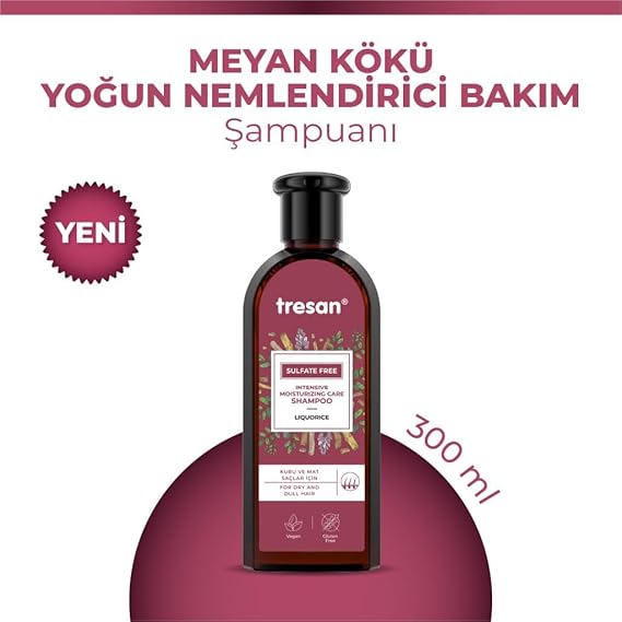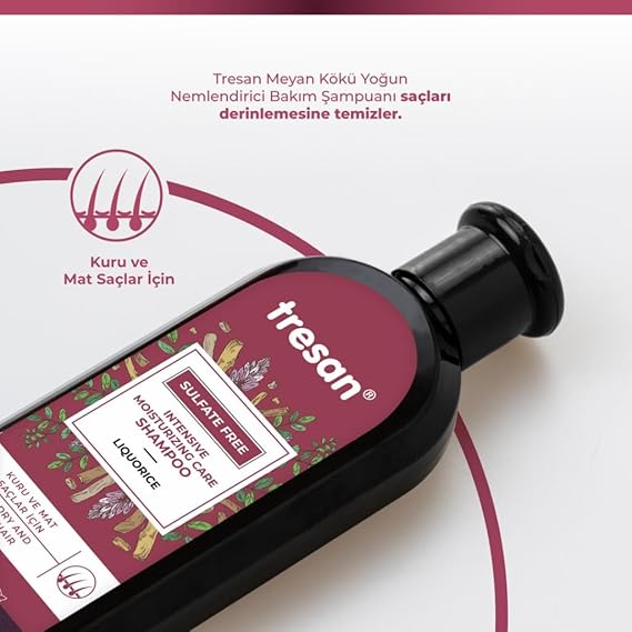 ✅Tresan Meyan Kökü Yoğun Nemlendirici Bakım Şampuanı, içeriğindeki Meyan kökü özü ile saçları derinlemesine temizler ve besler. Saçları yatıştırarak nem seviyesini artırır, pürüzsüzleşmelerine, parlaklık kazanmalarına ve kolay şekillenmelerine yardımcı olur.