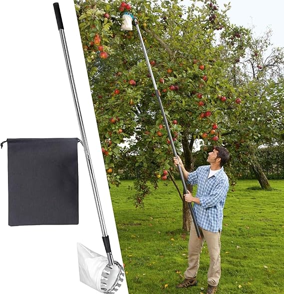 Meyve Toplama Çubuğu,Teleskopik Saplı Meyve Toplama Aleti – Paslanmaz Ayarlanabilir Meyve Toplayıcı Uzatma Aparatı – Limon Armut Mango Ağaçları İçin