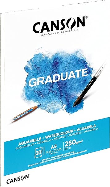 Mezun Suluboya 250 gsm A5 Kağıt, Soğuk Preslenmiş, Tampon Yapıştırılmış Kısa Taraf, 20 Doğal Beyaz Çarşaf, Öğrenci Sanatçılar için İdeal