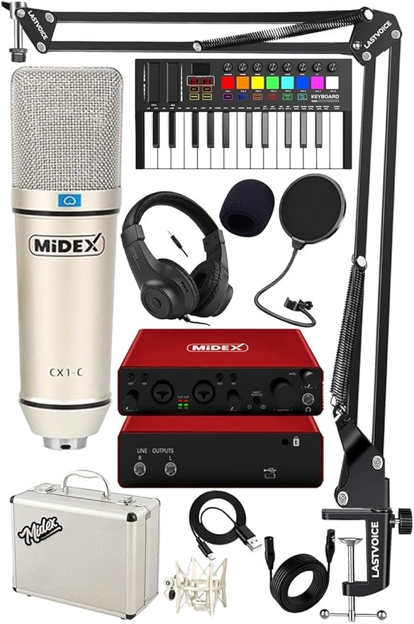 Midi Paket-3 Stüdyo Ekipmanları Seti Ses Kartı Midi Klavye Mikrofon Kulaklık