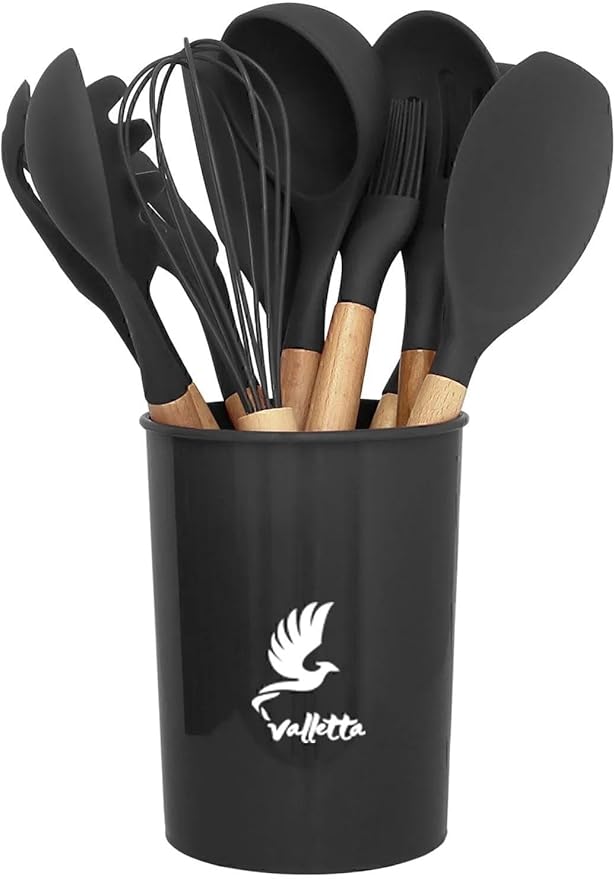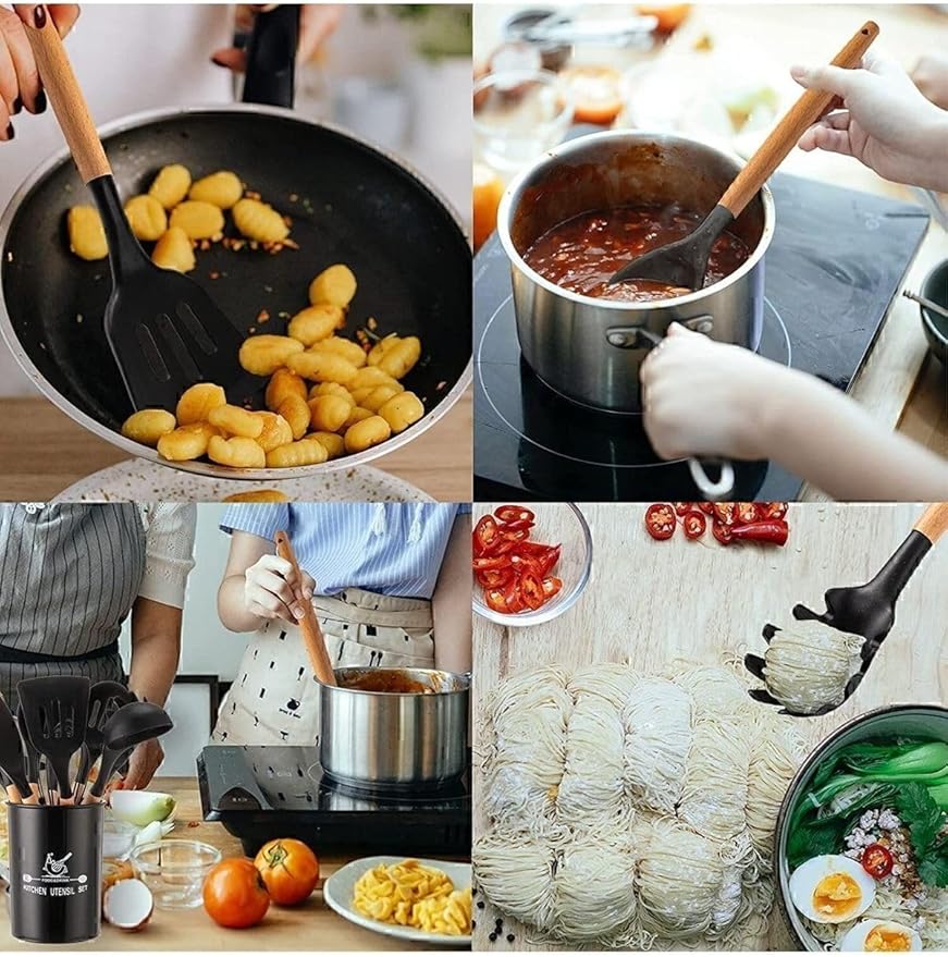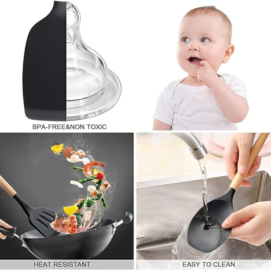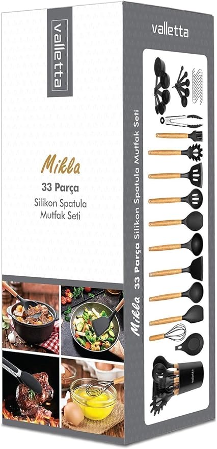 Mikla Isıya Dayanıklı Yanmaz Yapışmaz 33 Parça Silikon Spatula Mutfak Seti Siyah