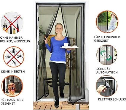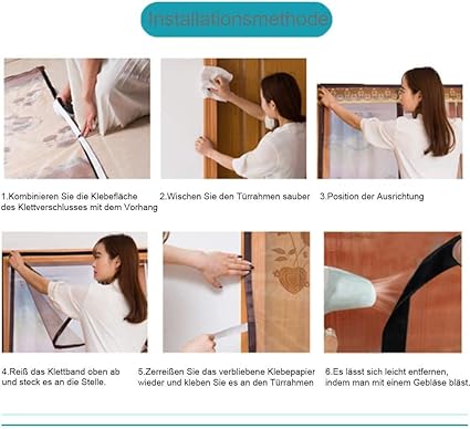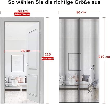 Kolay montaj ve sökme: Kolay kurulum, birlikte verilen cırt cırtlı bandı kapı çerçevesine delmeden yapıştırın. Kullanmadığınız zaman yapışkan bandı yırtmak yerine perdeyi çıkarın ve kapı çerçevesine zarar vermez. Teslimat kapsamına, ızgarayı ahşap kapıya daha iyi takabileceğiniz pimler dahildir.