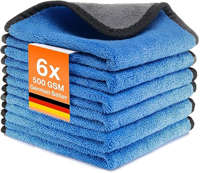 Mikrofiber Bezler Araba İç Mekan Ev Temizleme Bezleri 500 GSM Mikro Fiber Parlatma Bezi 30 x 30 cm (Mavi, 6)