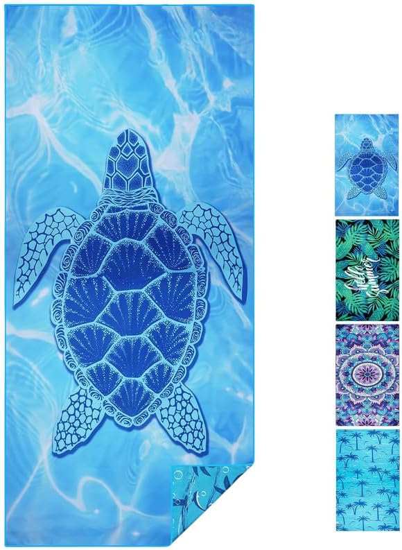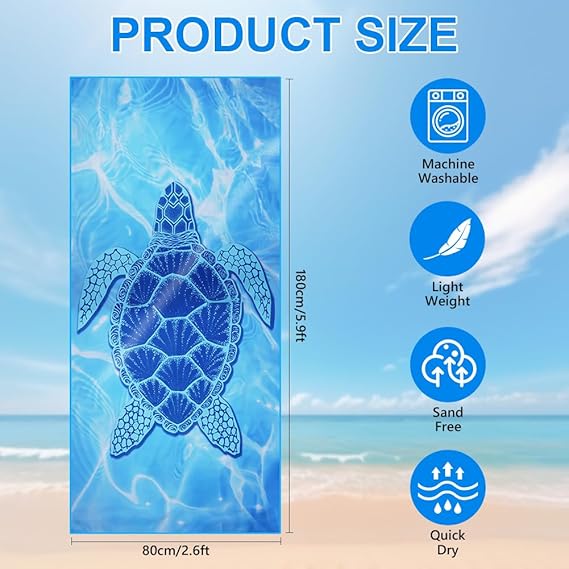 Mikrofiber Büyük Boy Hafif Plaj Havlusu 180 x 80 cm Ekstra Büyük İnce Kumsuz Havlu Seyahat Yüzme Havuzu Yetişkinler için Kamp Kadın Erkek Plaj Temelleri Tatil Hediyesi-Kaplumbağa