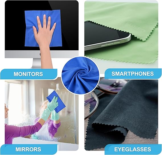 Temizlik Bezleri Kullanımı: Gözlük temizleme bezi dokunmatik ekranlarda, kamera lenslerinde ve filtrelerde ve saatler, akıllı telefonlar, gözlükler, tabletler ve gözlükler vb. Gibi hassas yüzeylerde kullanılabilir.