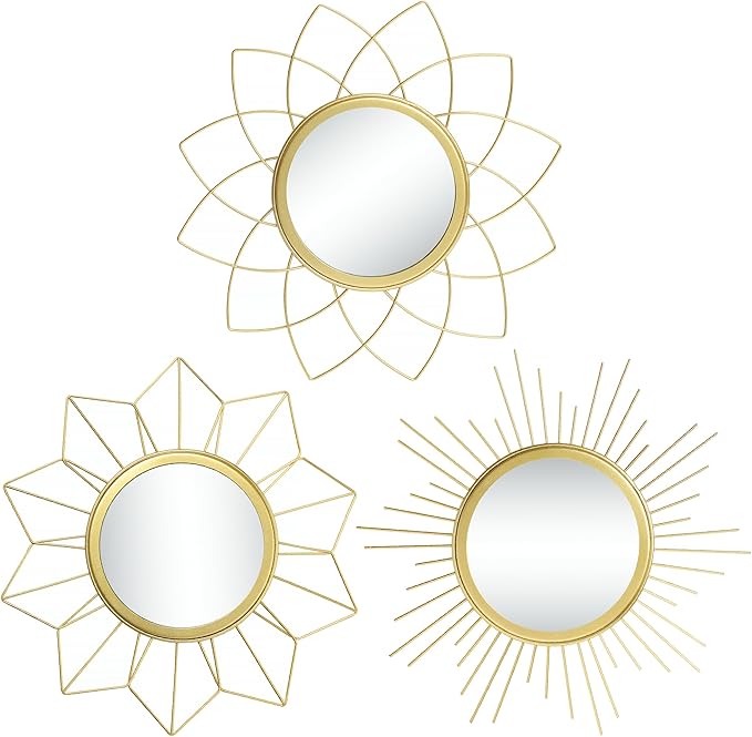 Miller Duvar dekorasyonu için metal altın ayna, 3’lü set ayna, oturma odası, yatak odası ve banyo için duvar dekorasyonu
