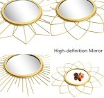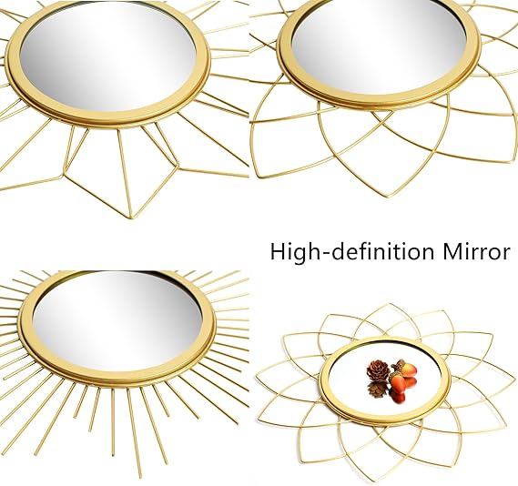 Altın duvar dekorasyon aynası – Üç asılı aynanın her birinin küçük üçgen kancası vardır, böylece kolayca duvara asılabilir. Metal çerçeve sağlam ve dayanıklıdır, bu da orta aynayı korur ve kırılmayı önler.
