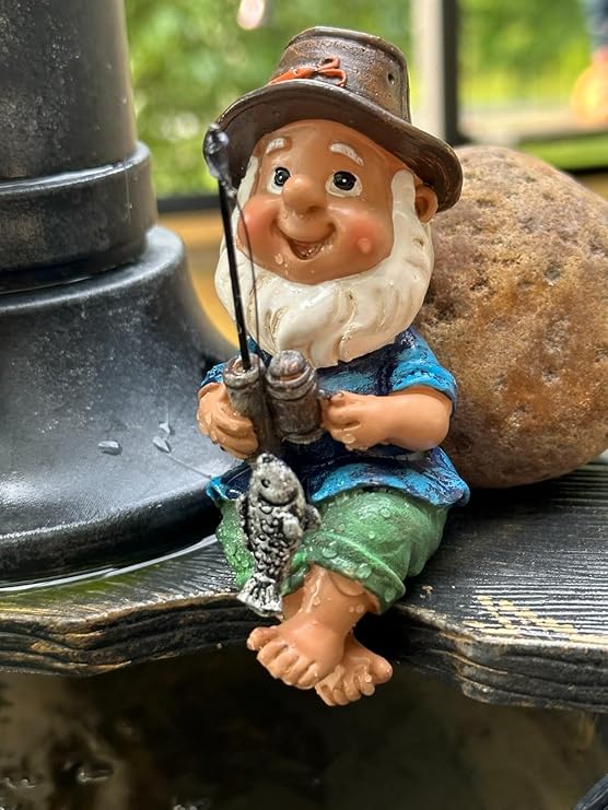 Balık cücesi: Boyut: 11 x 7,5 x 13,5 cm. Cüce süsler gerçekçi ve çok dekoratiftir. Bu bahçe cücesi heykelinin bir şapkası ve kaba bir cüce sakalı vardır. Bahçe duvarınıza veya bir gölet veya çeşmenin kenarına yerleştirebilirsiniz ve kahverengi şapka ve cüce sakallı küçük bir balık yakaladınız. Uyarı: Sadece 14 yaşından büyük kişiler için uygundur.