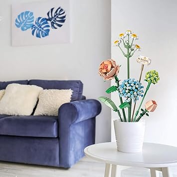 Çiçek buketi onu benzersiz bir hediye, yaratıcı ve dikkat gerektiren bir proje yapan 680 yapı taşından oluşur. Birleştirme sırasında el göz koordinasyonu alıştırması için de harika bir seçenektir.