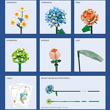Üstün kalite, güvenli ve emniyetli ABS plastikten yapılmış önemli botanik koleksiyonu. Kalıcı, canlı ve rengarenk bir buket. Dikkat: Parçacıklar küçük olduğundan, Lego ile uyumlu değildir. Lütfen doğru tutun.