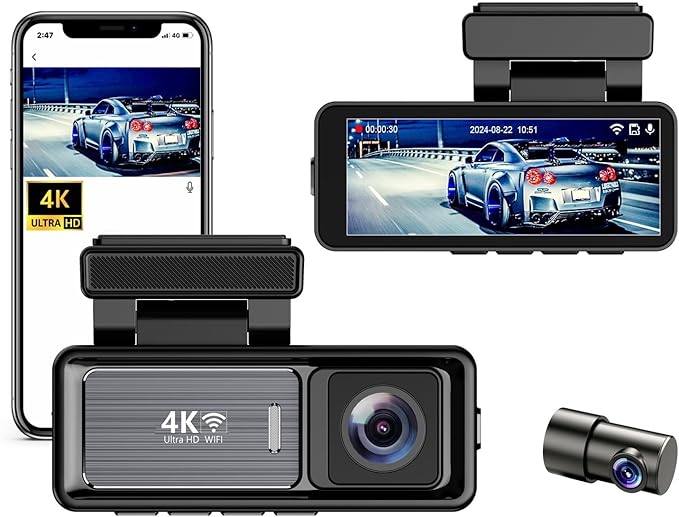 MINI Çift Lensli WiFi GPS Dash Kamera – 4K Ön Kamera & 1080P Arka Kamera, Gece Görüşü, Park Modu, Geniş Açılı Lens, Döngüsel Kayıt, 128GB SD Kart Desteği (Dahil değildir) M6