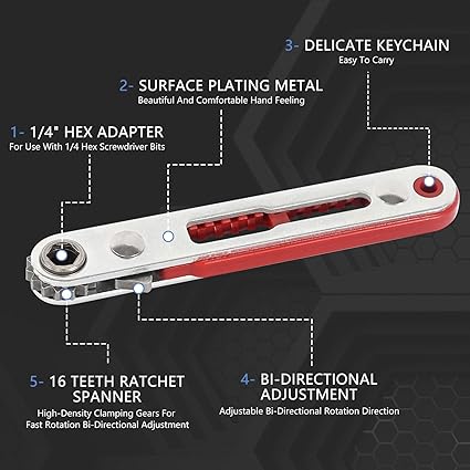 【Kompakt ve taşınabilir】Paket içerisinde saklama fonksiyonlu 2 mini cırcır anahtar bulunur. Altıgen uç 1/4 inç büyüklüğündedir ve iki tornavida ucu için yer sunar, pratik ve pratiktir; sapın ucunda kolay taşıma ve saklama için bir anahtarlık tasarımı bulunur.