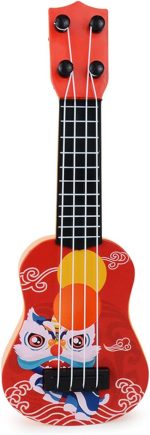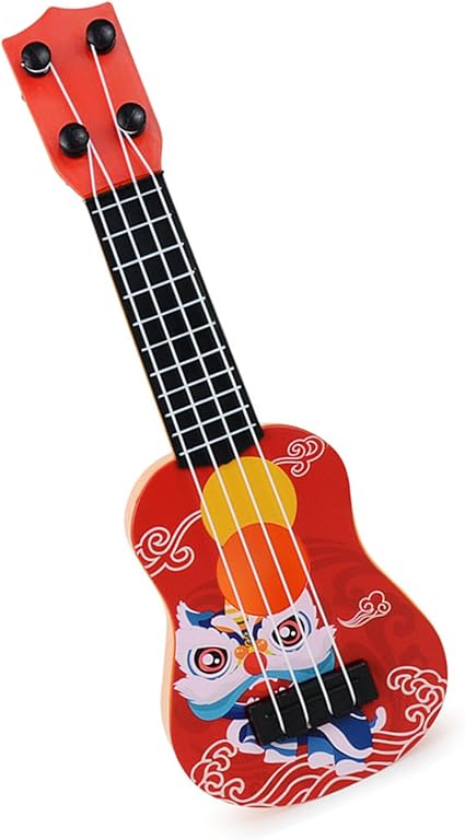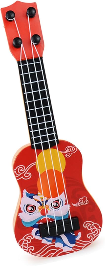 Mini Çocuk Ukulele, 4-String Ukulele Oyuncak Karikatür Aslan Günlük Eğlence Için Hafif (Kırmızı)