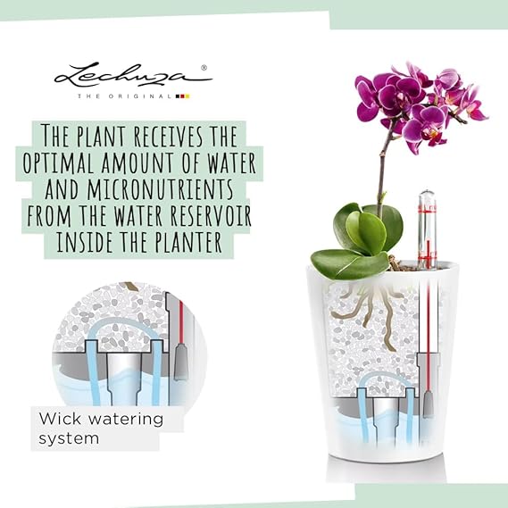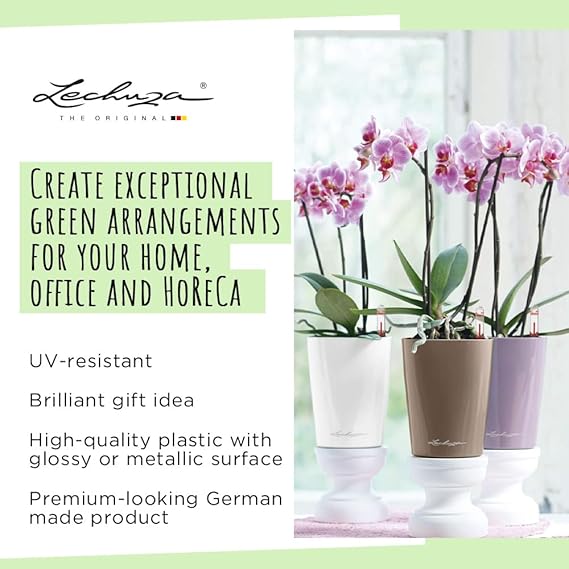 Sulama sistemi: Bitki saksısına entegre edilmiş orijinal Lechuza sulama sistemi bitkilere güvenilir bir şekilde doğru miktarda su sağlar. Tam sulama kontrolü için pratik su seviyesi göstergeli.