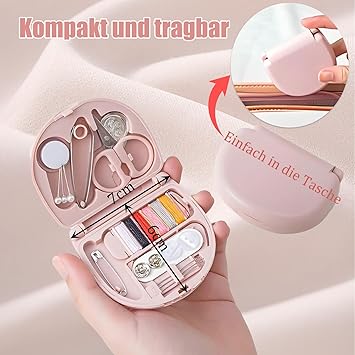 Mini dikiş seti, taşınabilir dikiş seti, seyahat, pembe iğne ve iplik seti, yeni başlayanlar, kendin yap ve evde kullanım için (6 x 7 cm)