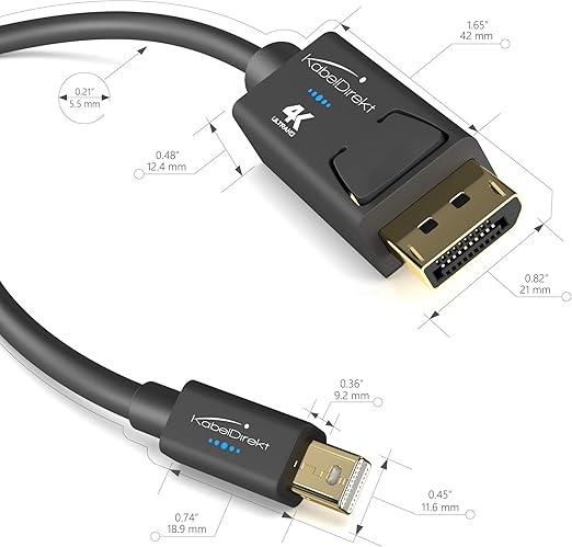 – Mini DisplayPort/Mini-DP (Thunderbolt)/DisplayPort kablosu – 2m (4K/60Hz ile UHD çözünürlük, sürüm 1.2, bilgisayar ve Mac için, kilitlemeli DP fişi, siyah)