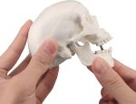 Küçük insan kafatası modeli sadece bir avuç içi büyüklüğünde olmasına rağmen gerçekçi bir kemik dokusuna ve net dikişlere sahiptir. Tüm foramen ve fossa, kafatasının tek tek kemiklerini açıkça tanımlayacak şekilde doğru bir şekilde görüntülenir.